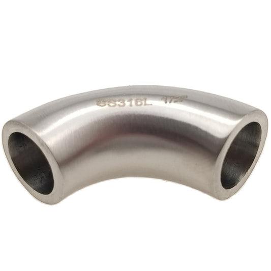 Hygienischer Sanitäranschluss aus Edelstahl 316L, 90 Grad, polierter Schweiß-Kurzbogen