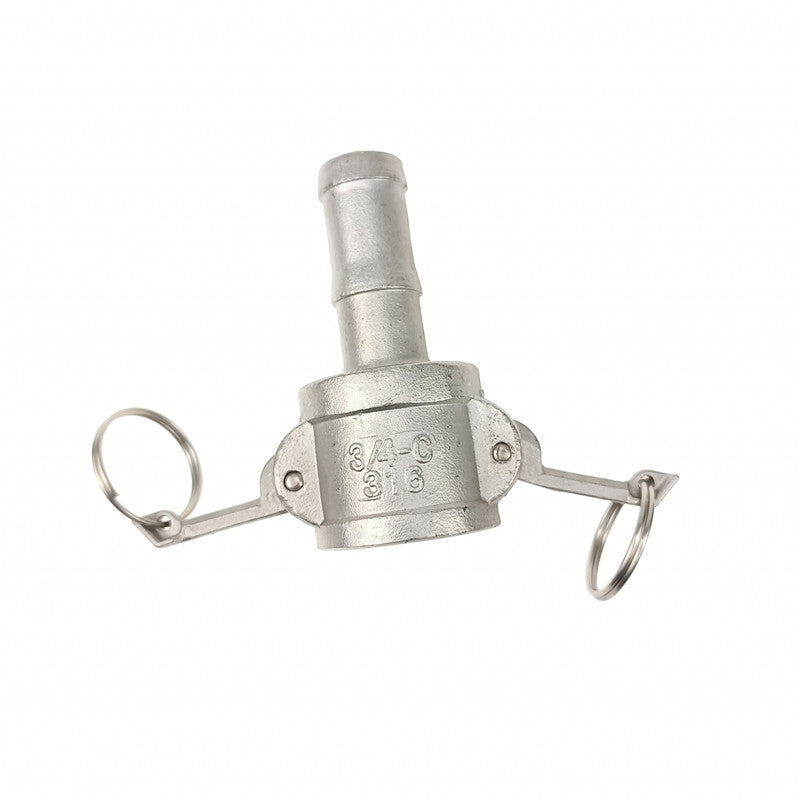 Feinguss-Schlauchverschraubung aus Edelstahl 304, Global Typ C, Nocken- und Nutverschraubung, 3/4 Zoll Buchse x 3/4 Zoll Schlauch-ID, Aufsteckbar
