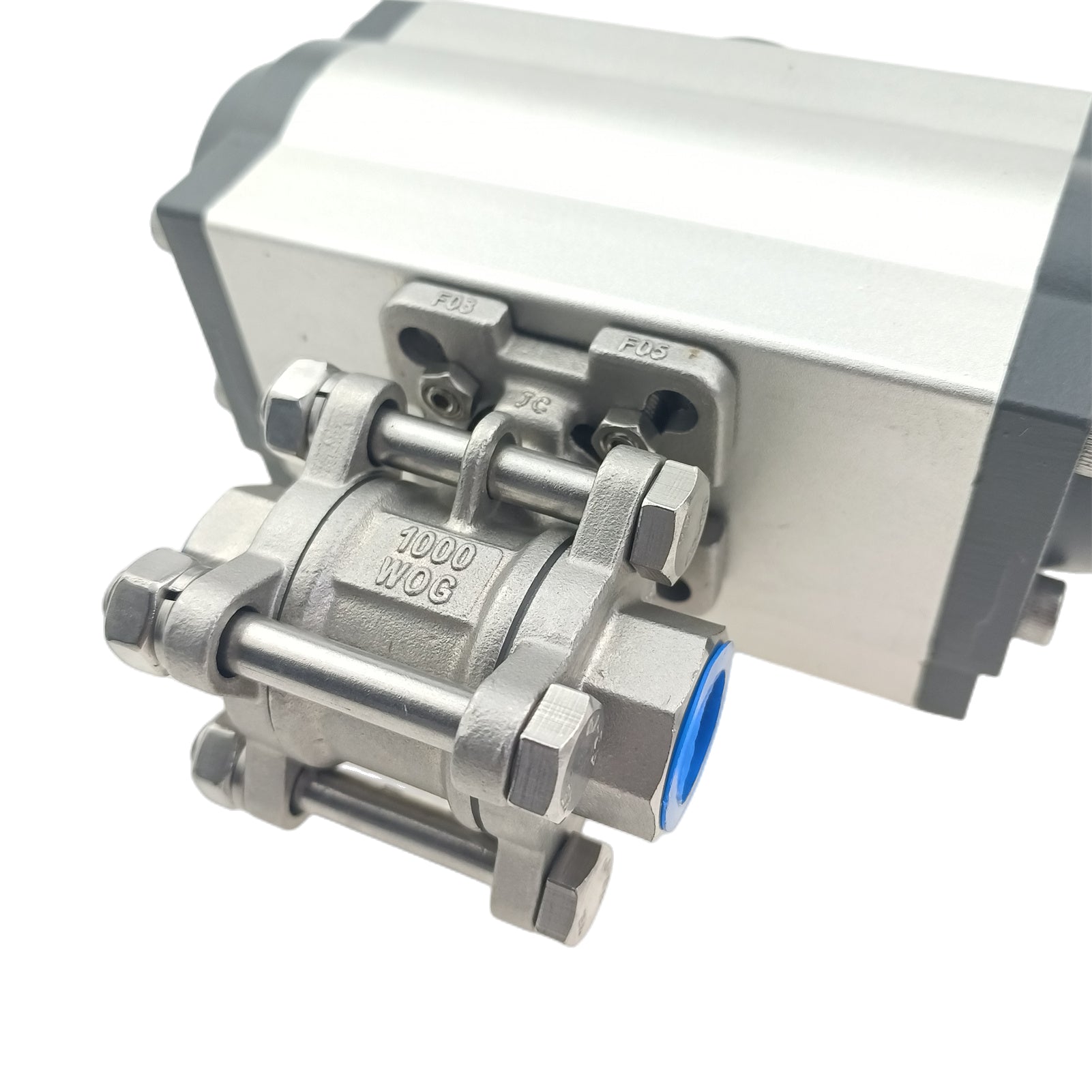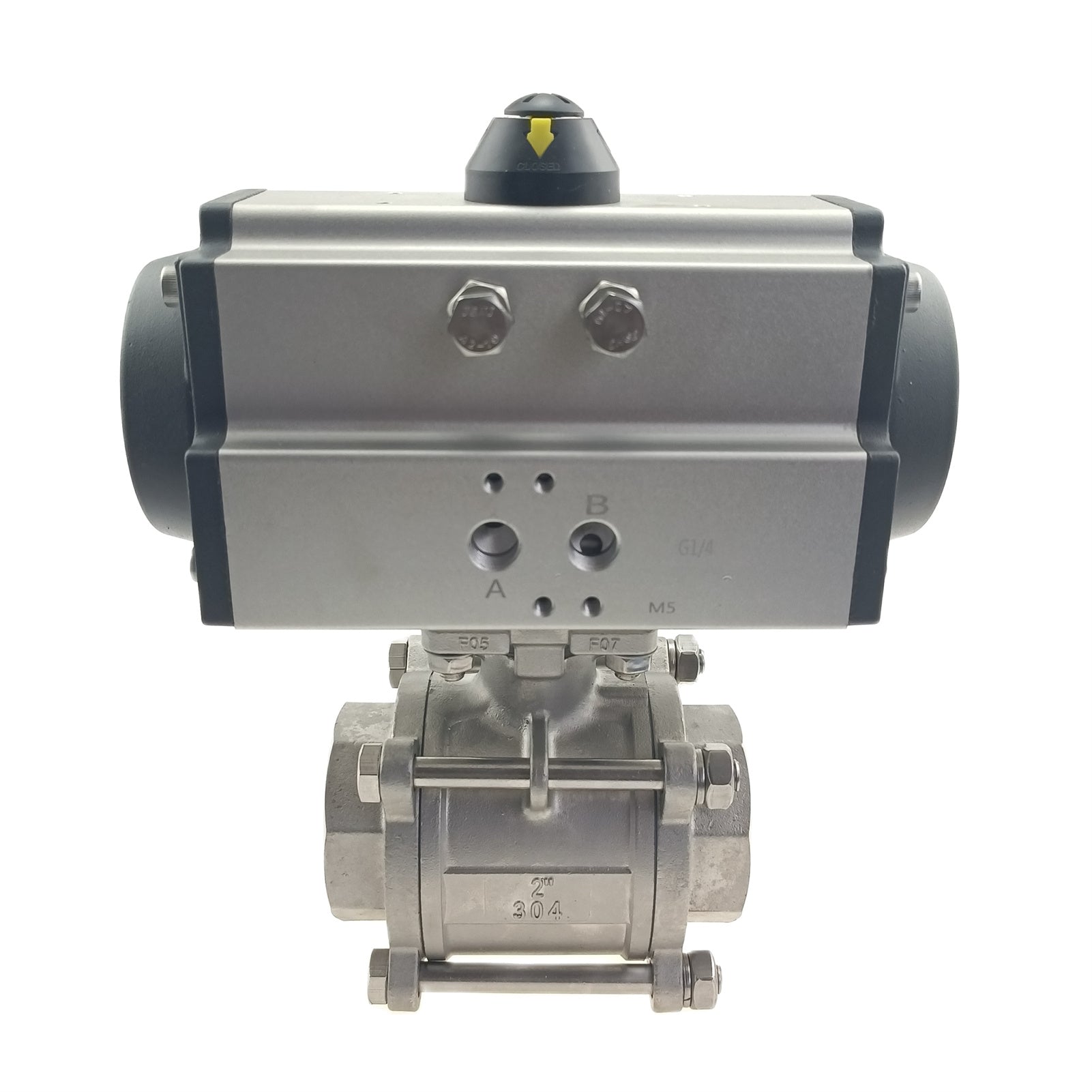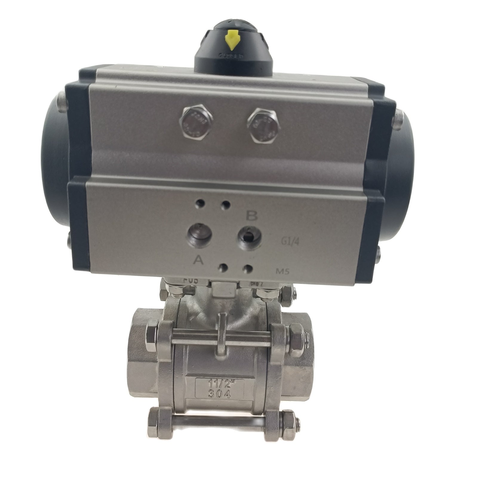 Edelstahl-Doppeltwirkend NC pneumatisch betätigter FNPT-Gewinde-Kugelhahn, 3-teilig, verschraubt, mit Reparatursatz