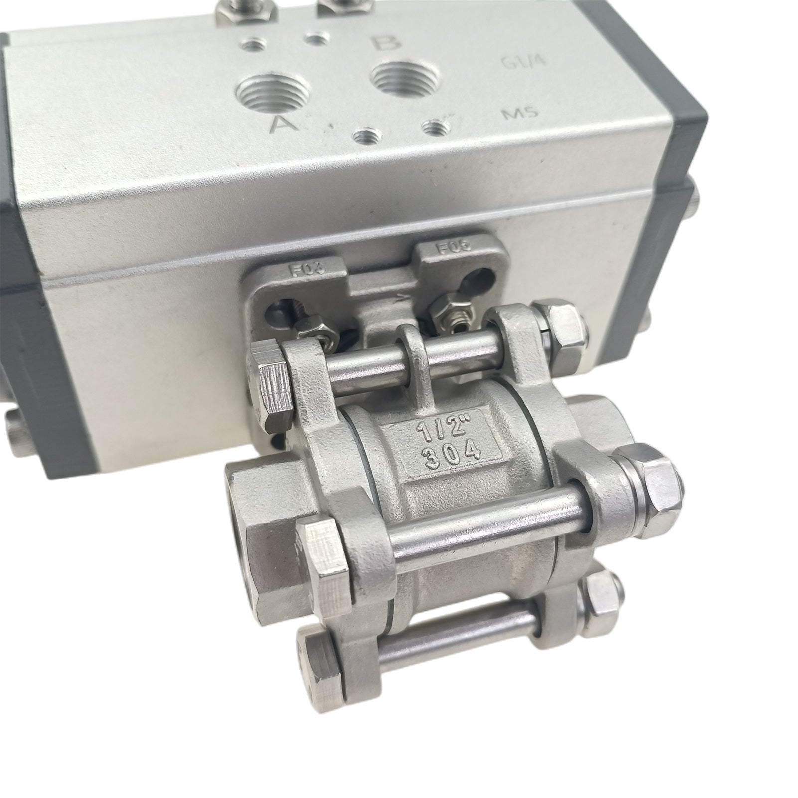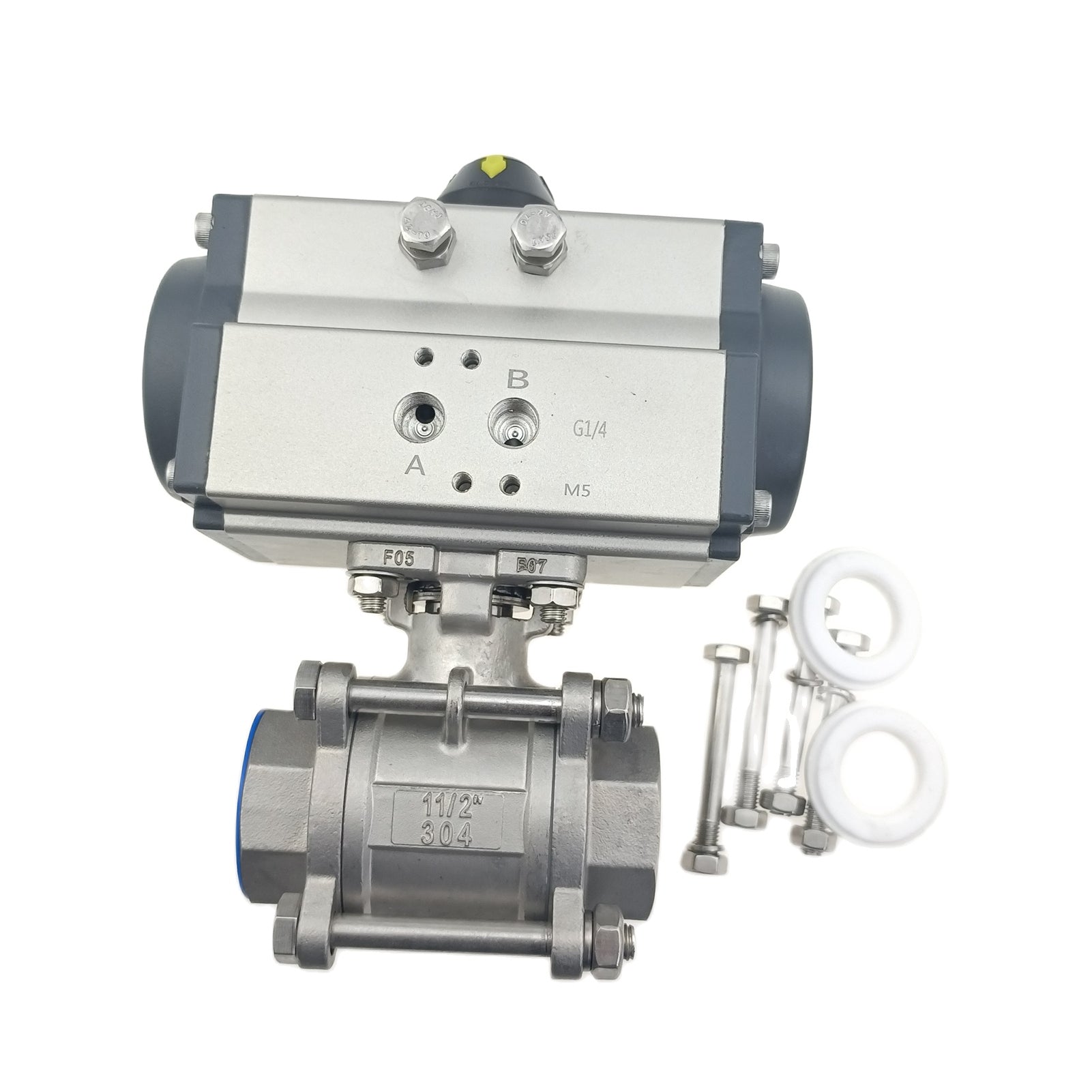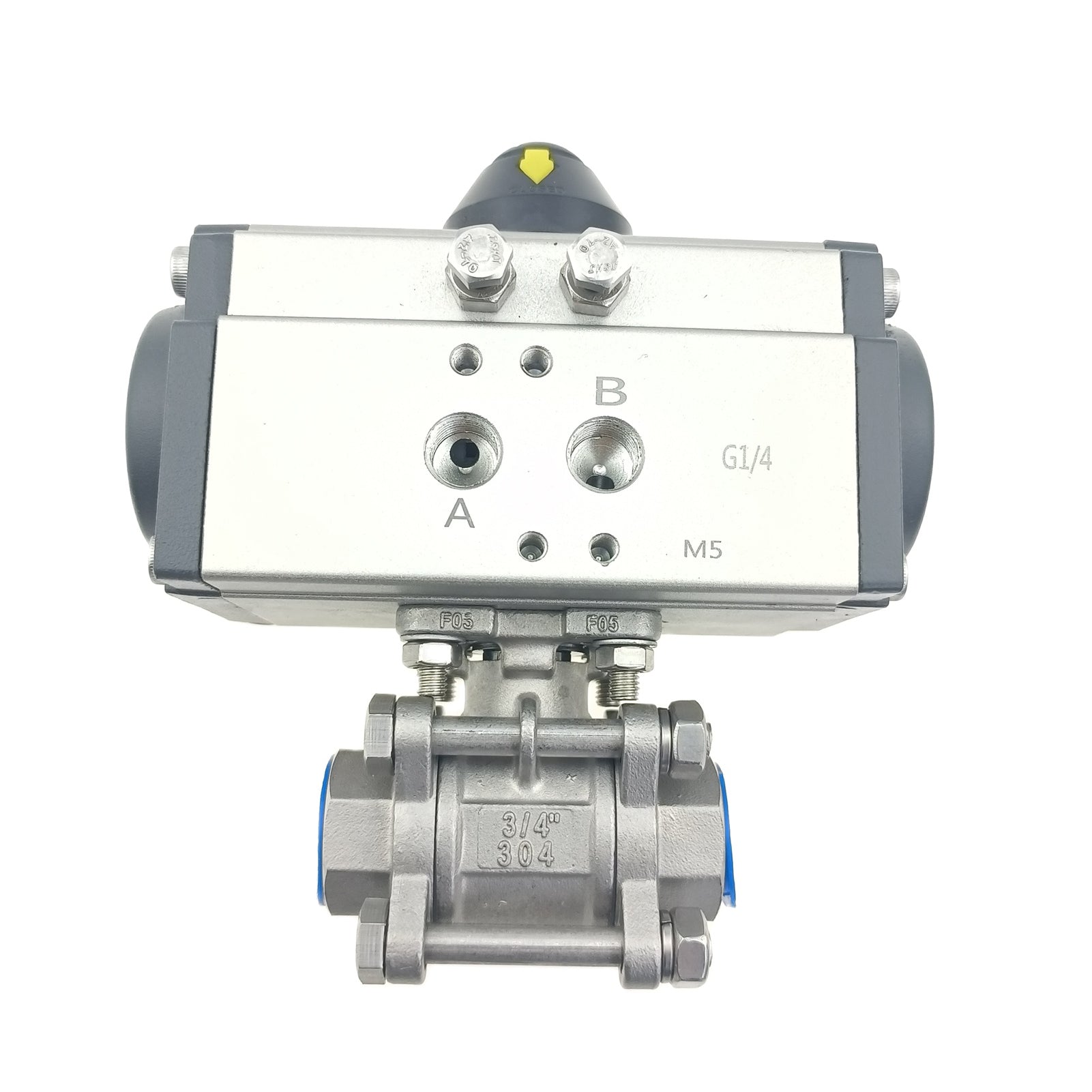 Edelstahl-Doppeltwirkend NC pneumatisch betätigter FNPT-Gewinde-Kugelhahn, 3-teilig, verschraubt, mit Reparatursatz